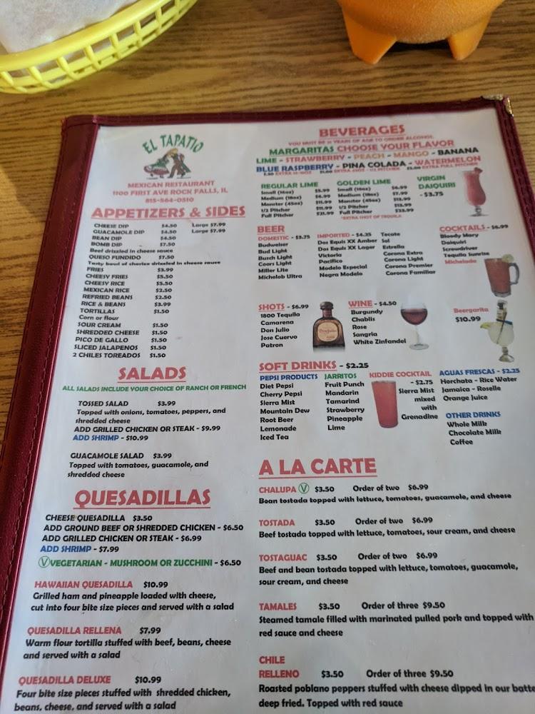 Welcome to El Tapatio of Rock Falls, your go-to destination for authentic Mexican cuisine conveniently located at 1100 1st Ave. Our vibrant restaurant offers a laid-back atmosphere perfect for families, students, and groups. Indulge in excellent cocktails, delicious desserts, and a wide selection of local beers. We provide a range of services including dine-in, takeout, delivery, and catering, ensuring you enjoy an exceptional meal, whether dining solo or with friends. With accessible facilities and a menu that caters to everyone, El Tapatio is ideal for lunch and dinner. Join us today and experience the flavors of Mexico!